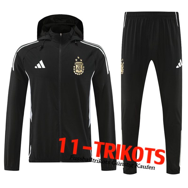 Argentinien Trainingsanzug Mit Kapuze Trainingsjacke Windbreaker Schwarz/Grau 2025/2026